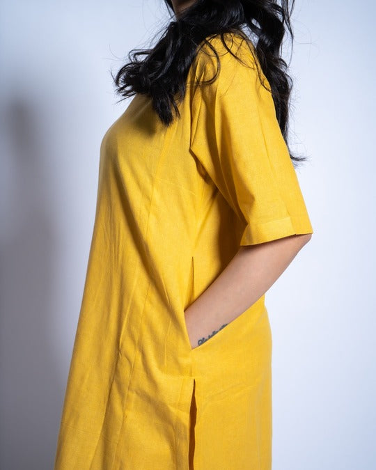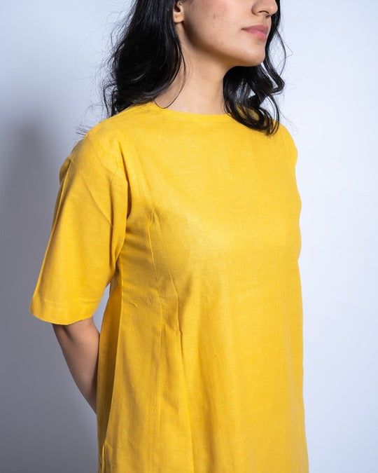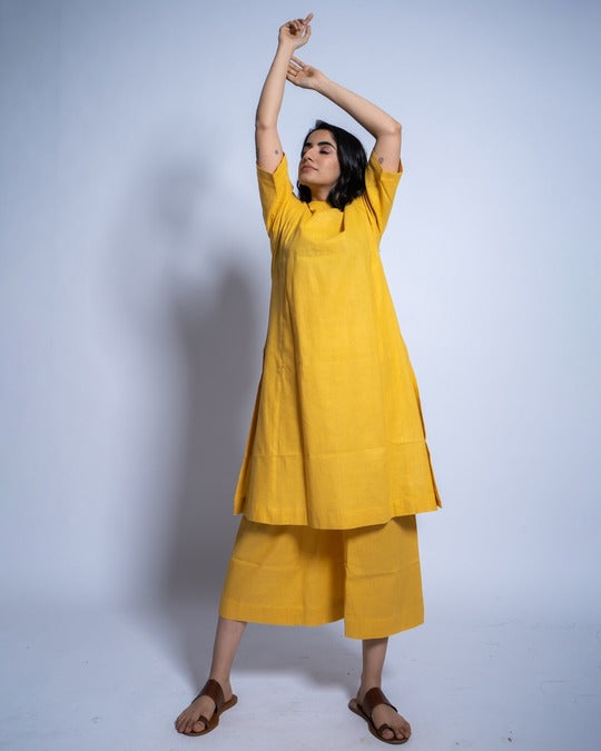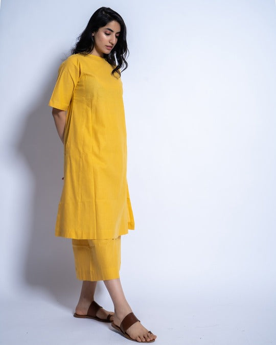 Handsome Co-Ord set designed for 9 am to 9 pm ease. Subtle round neck. Placket with a single button reveal at neck. Stylish curved hem. In-seam pockets.