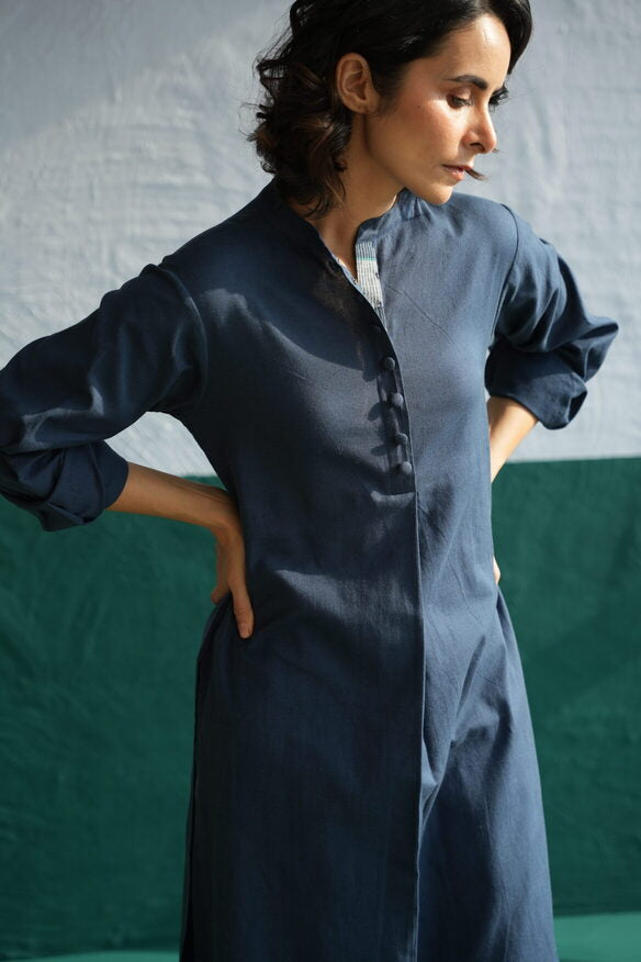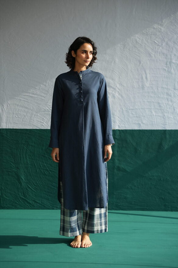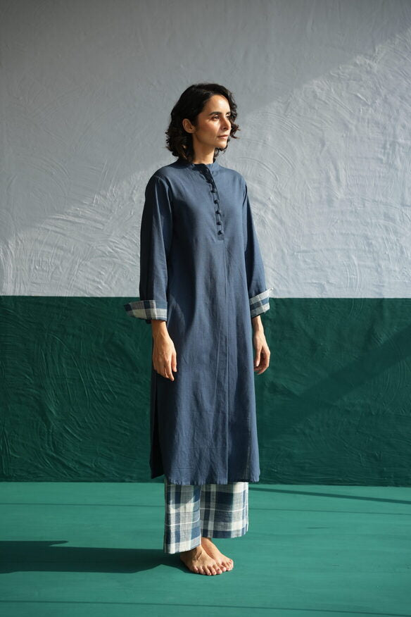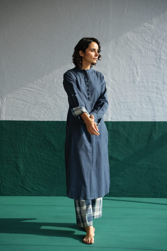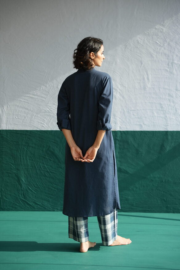 This easy-wearing kurta set falls below the knee, and with its body-skimming fit, it pairs perfectly with pyjamas, pants or a pair of jeans.