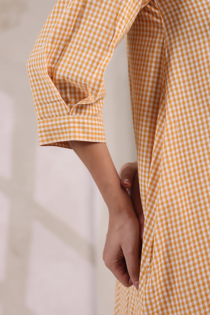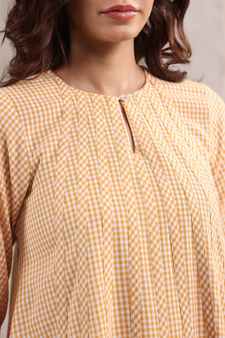 Cheerful small yellow checks for a vibrant look.