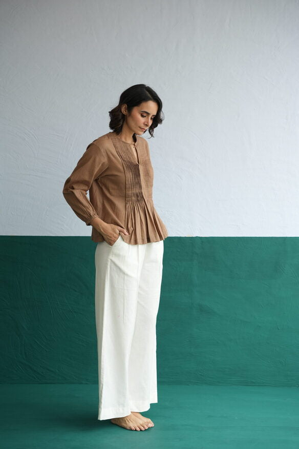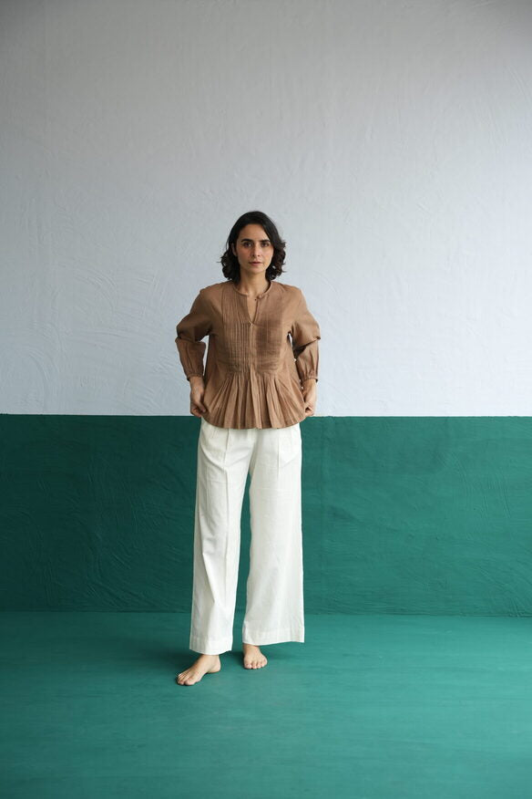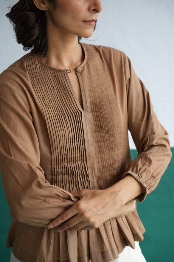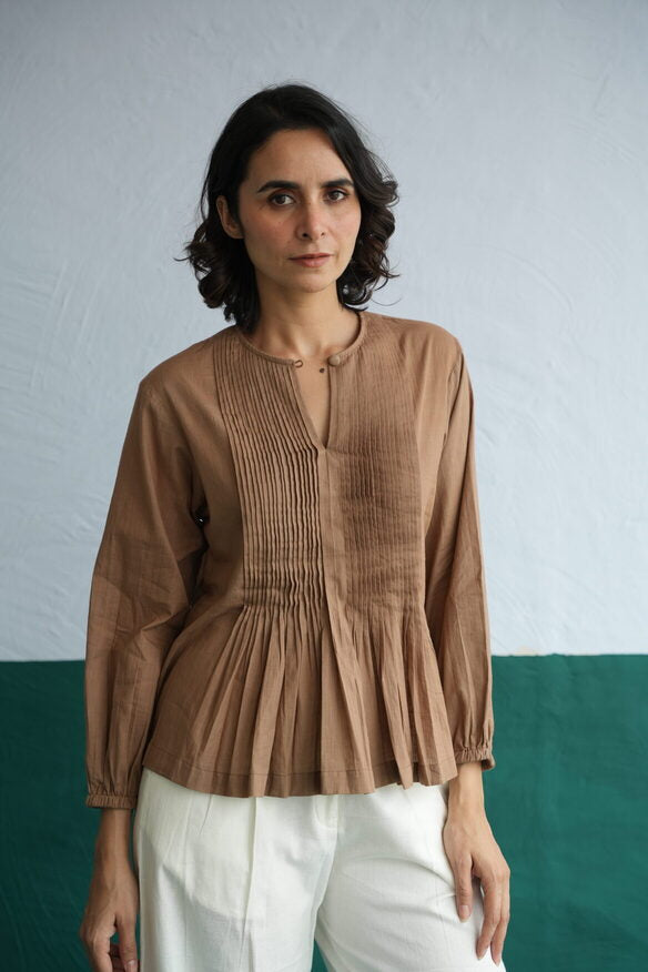 The Shirt Pleated Top is perfect for any occasion, whether it's a day at the office or a casual brunch with your friends.