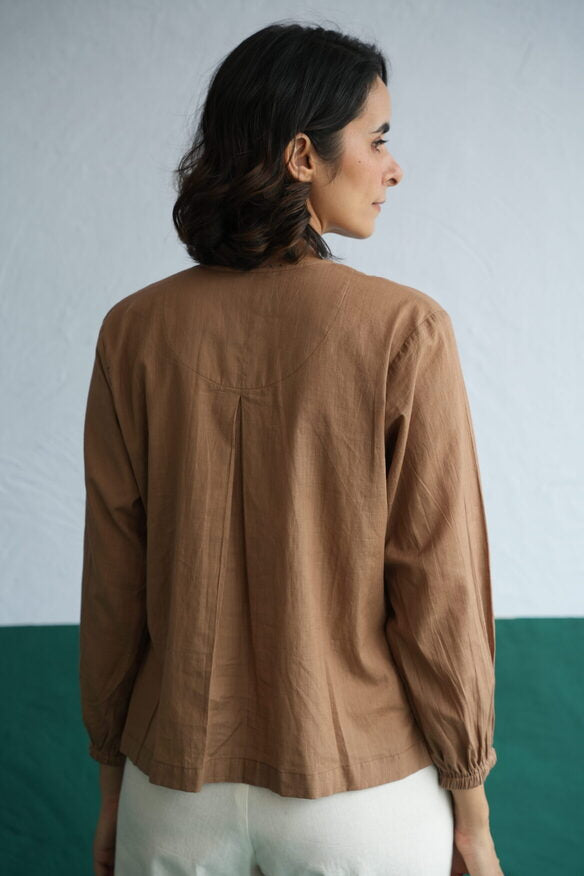 Product Details : Its earthy brown color and versatile cut makes it easy to pair with any outfit, adding a touch of effortless style to your look. The small slit sleeves provide a subtle yet stylish detail, offering a comfortable fit.
