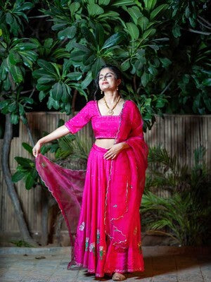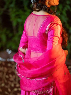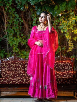 Gomed Pink Lehenga Set. The set comes with Lehenga, Blouse, Kurti and Dupatta. Lehenga and Blouse are made in pure...