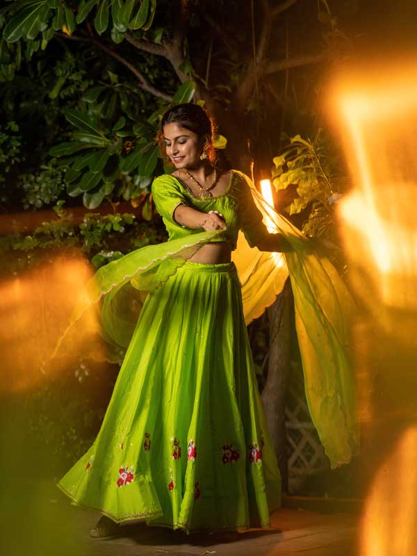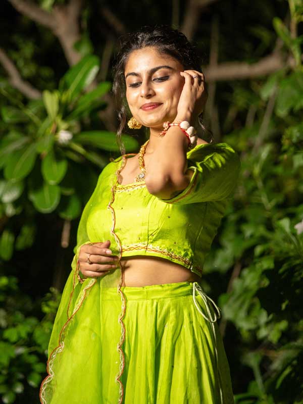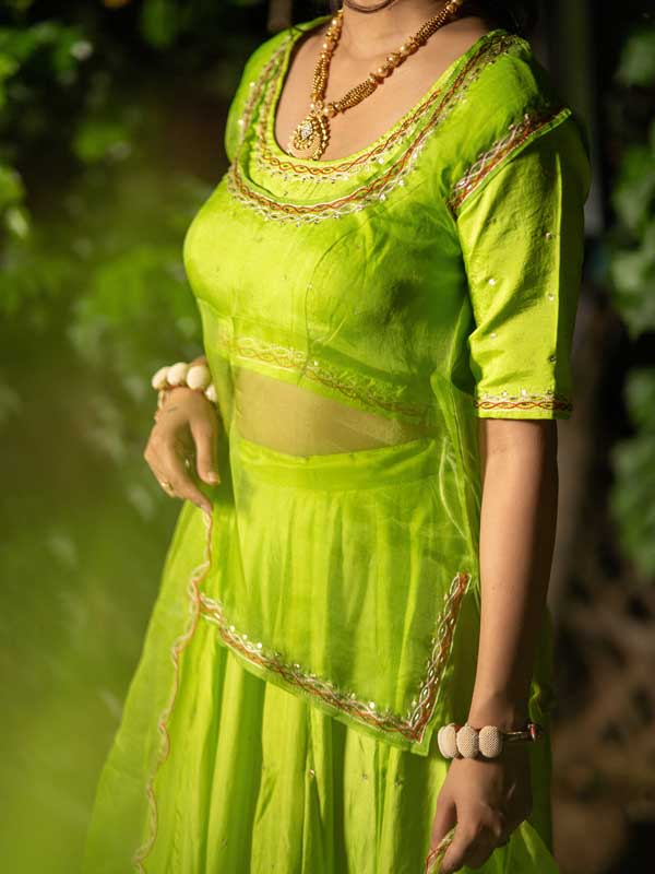 Mriganka Green Lehenga Set. The set comes with Lehenga, Blouse, Kurti and Dupatta. Lehenga and Blouse are made in pure...