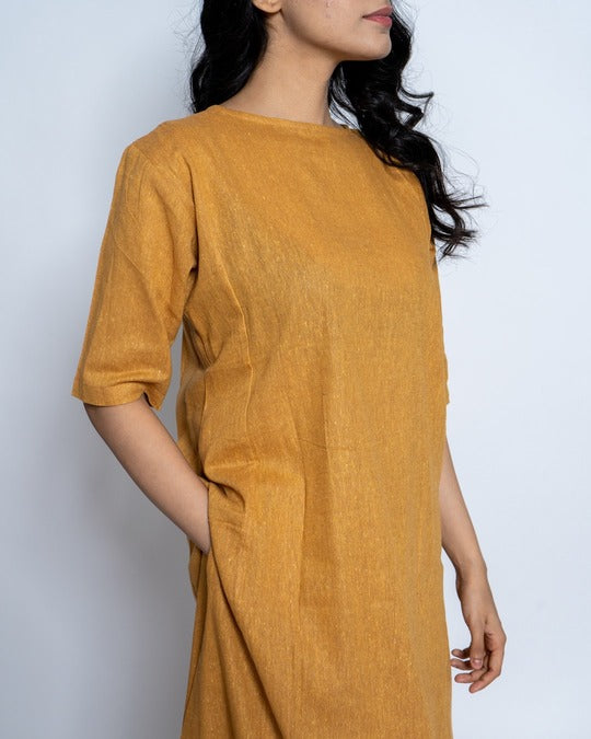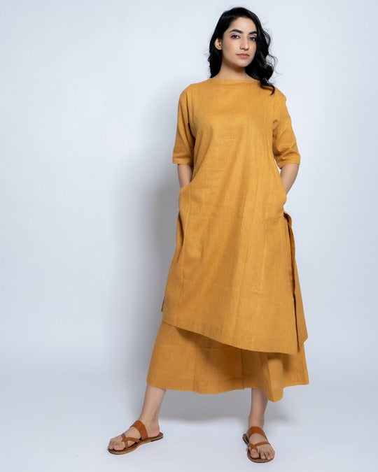 Handsome Co-Ord set designed for 9 am to 9 pm ease. Subtle round neck. Placket with a single button reveal at neck. Stylish curved hem. In-seam pockets.