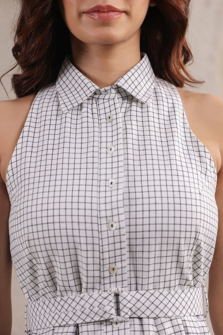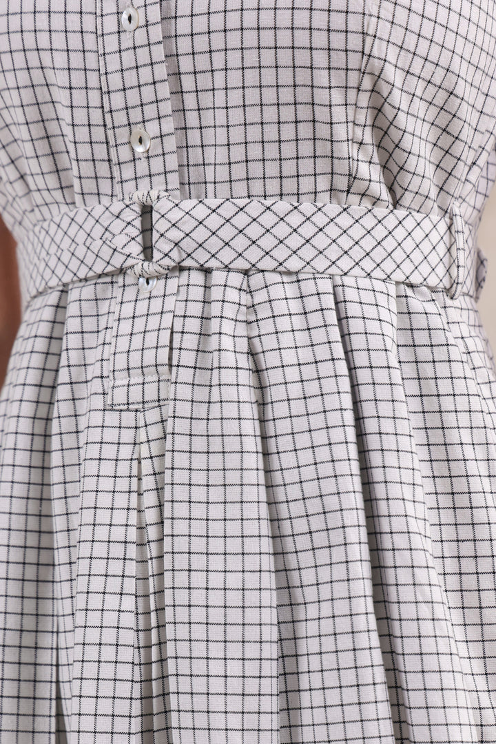 Chic and playful, this black short dress is designed in classic checks with a flattering fit-and-flare silhouette. The fitted bodice accentuates your shape, while the flared hem adds a touch of movement and charm. Crafted for comfort and style, it’s the perfect choice for brunch dates, evenings out, or any moment you want to look effortlessly put-together.