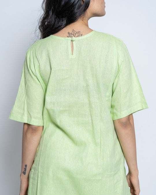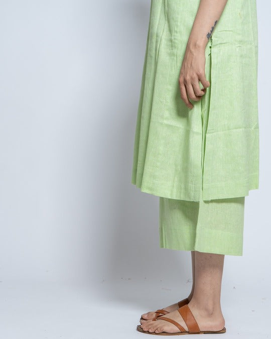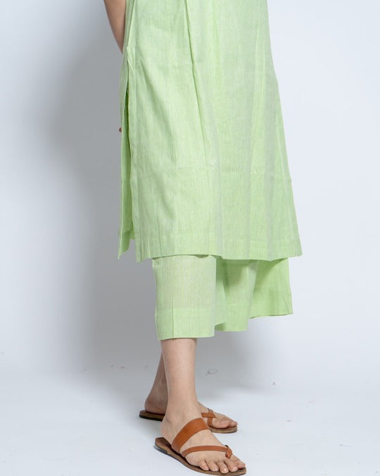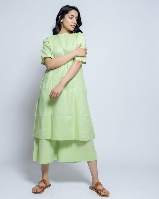 Handsome Co-Ord set designed for 9 am to 9 pm ease. Subtle round neck. Placket with a single button reveal at neck. Stylish curved hem. In-seam pockets.