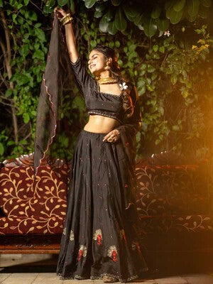 Raat Rani Black Lehenga Set.