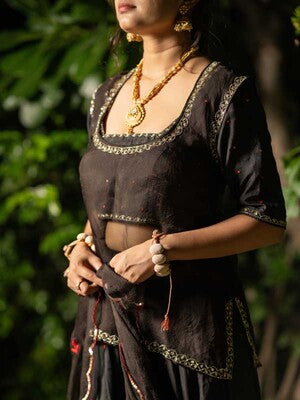 Raat Rani Black Lehenga Set. The set comes with Lehenga, Blouse, Kurti and Dupatta. Lehenga and Blouse are made in...