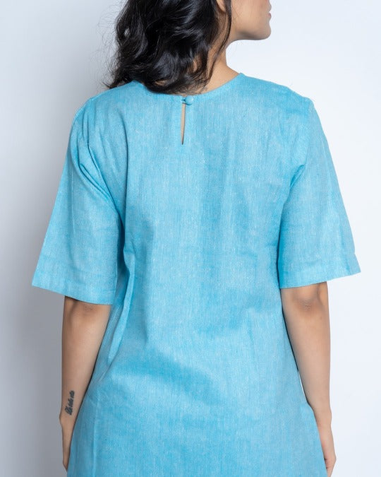 Handsome Co-Ord set designed for 9 am to 9 pm ease. Subtle round neck. Placket with a single button reveal at neck. Stylish curved hem. In-seam pockets.