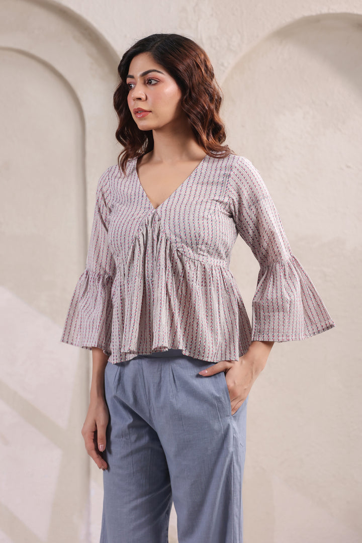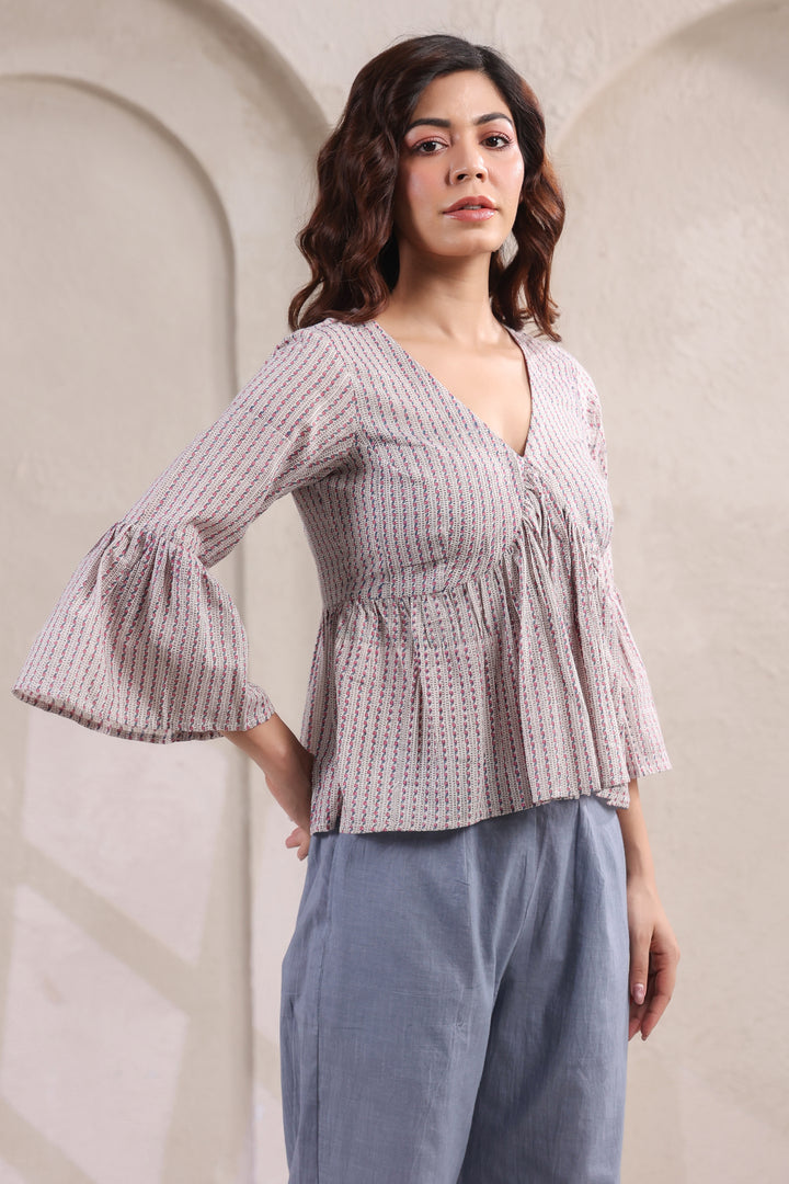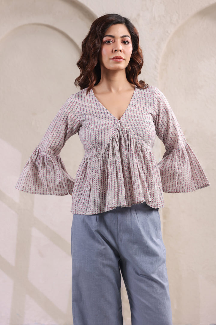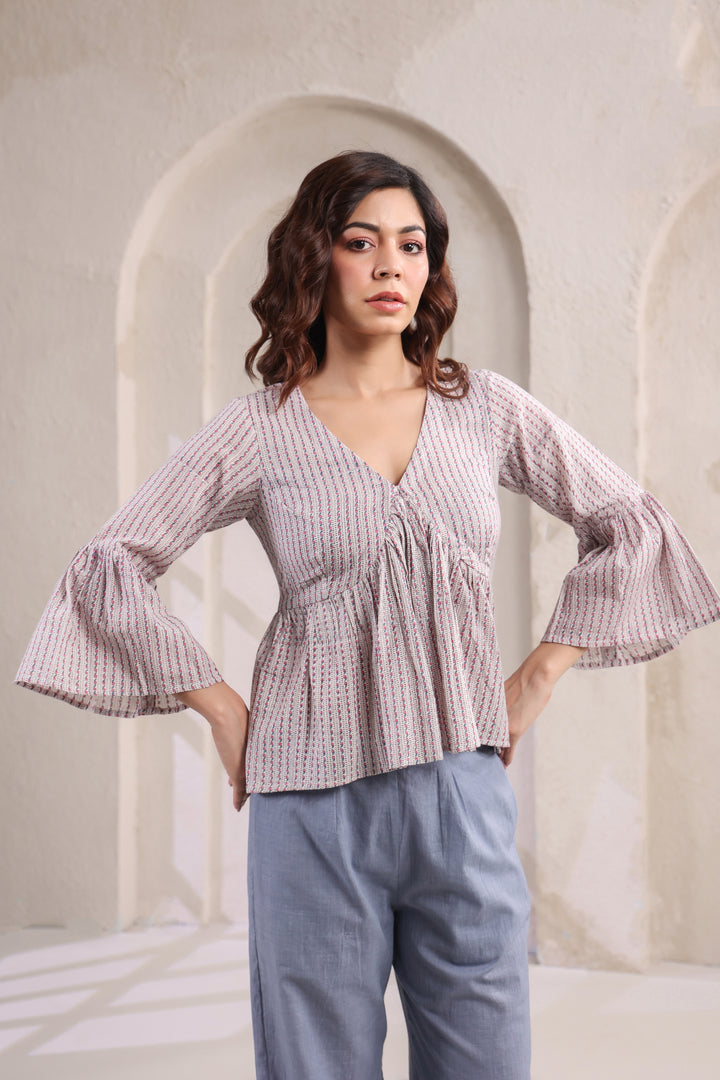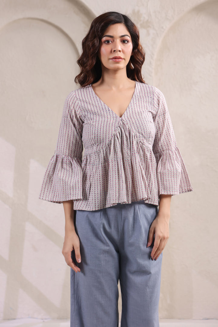 # For the days that drift gently—when time stretches, and you move to your own rhythm. #Printed in a playful chintz on airy white cotton, it’s cut with gentle tiers that flutter as you move. #With a relaxed fit and flared silhouette, it’s light, breathable, and made to flow through the season.