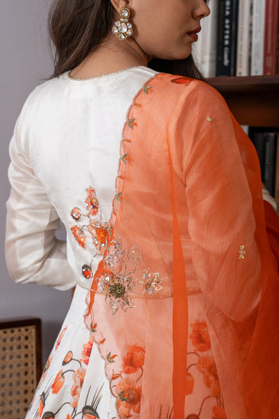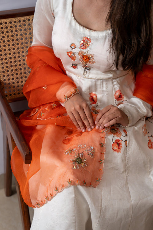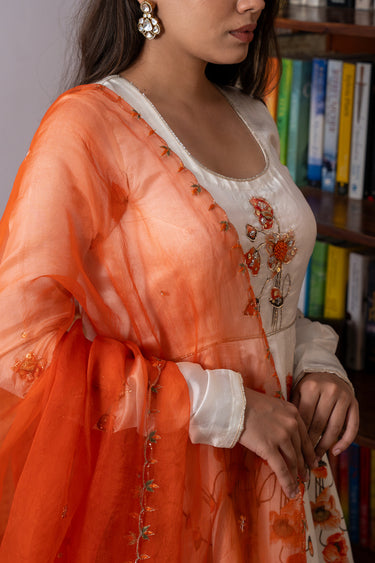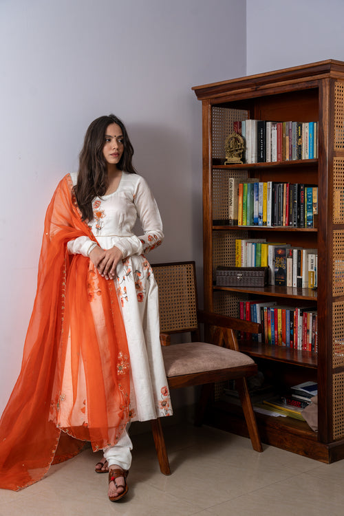 This Pure Italian Raw Silk suit set includes kurta, bottom and pure organza dupatta with beautiful and intricate handwork on...
