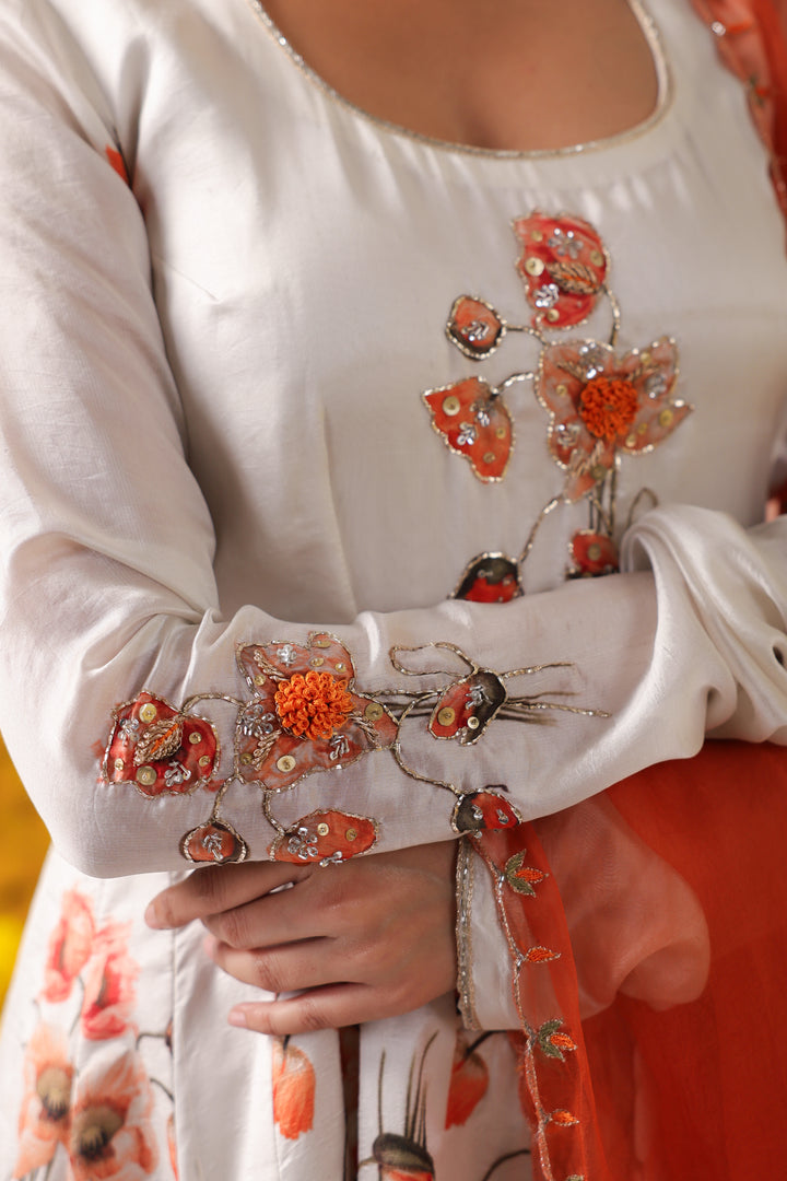 This Pure Italian Raw Silk suit set includes kurta, bottom and pure organza dupatta with beautiful and intricate handwork on...
