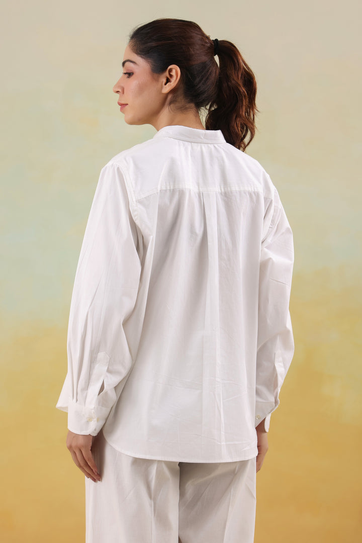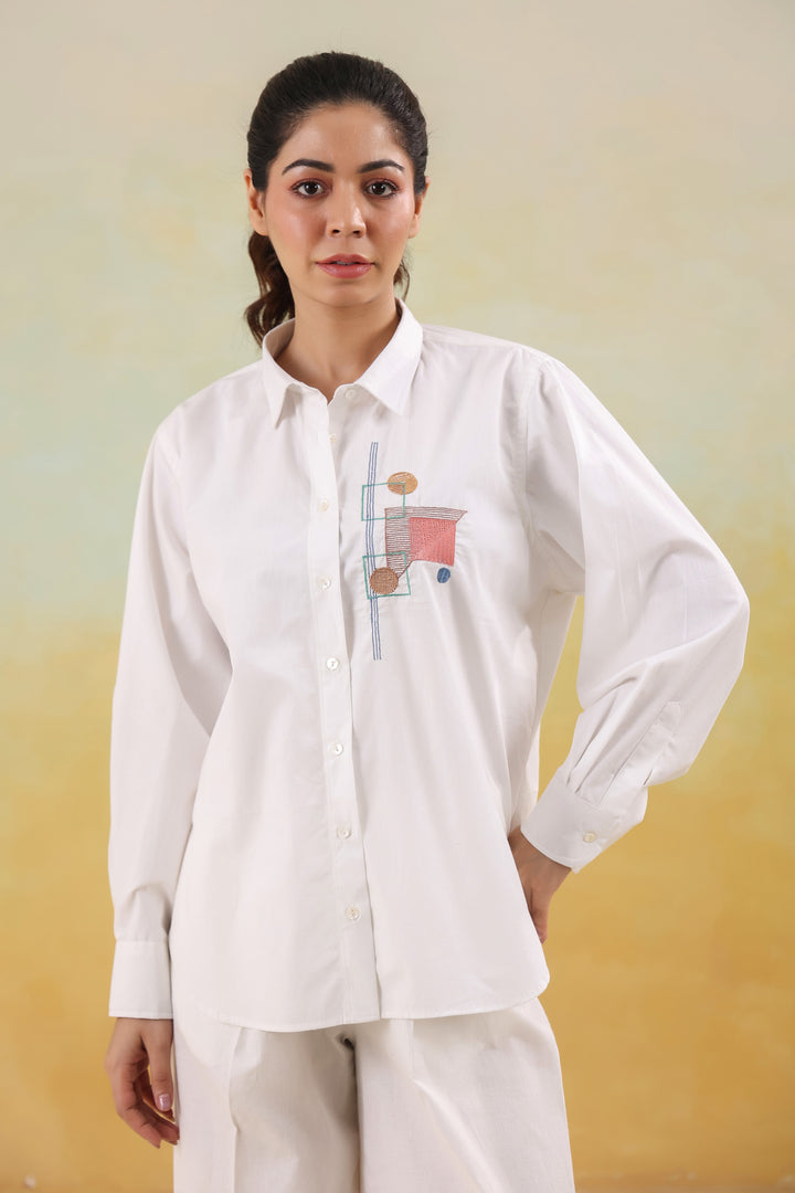 Artful Minimalism: Crisp white shirt with eye-catching geometric embroidery for a modern, stylish touch.