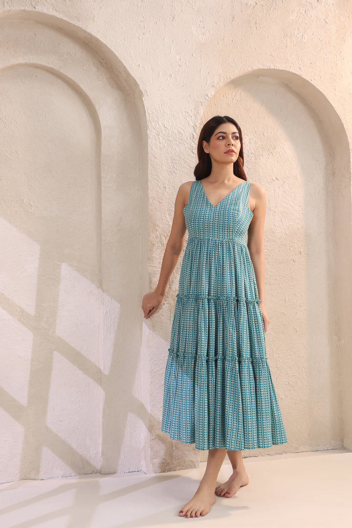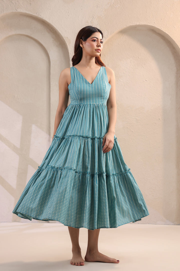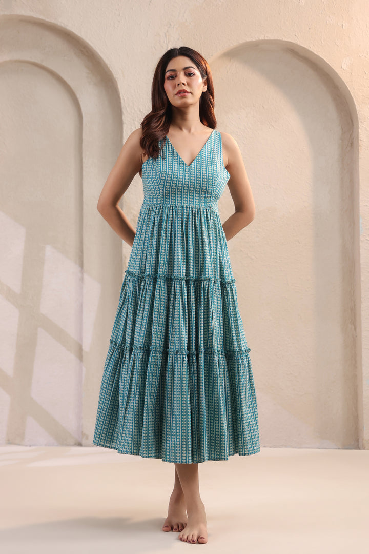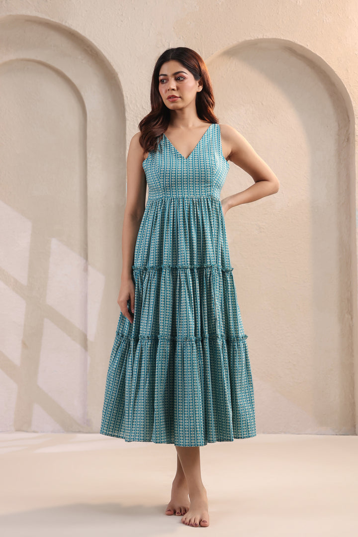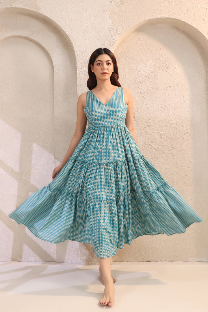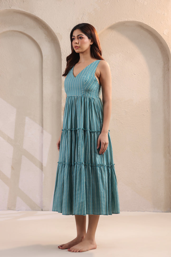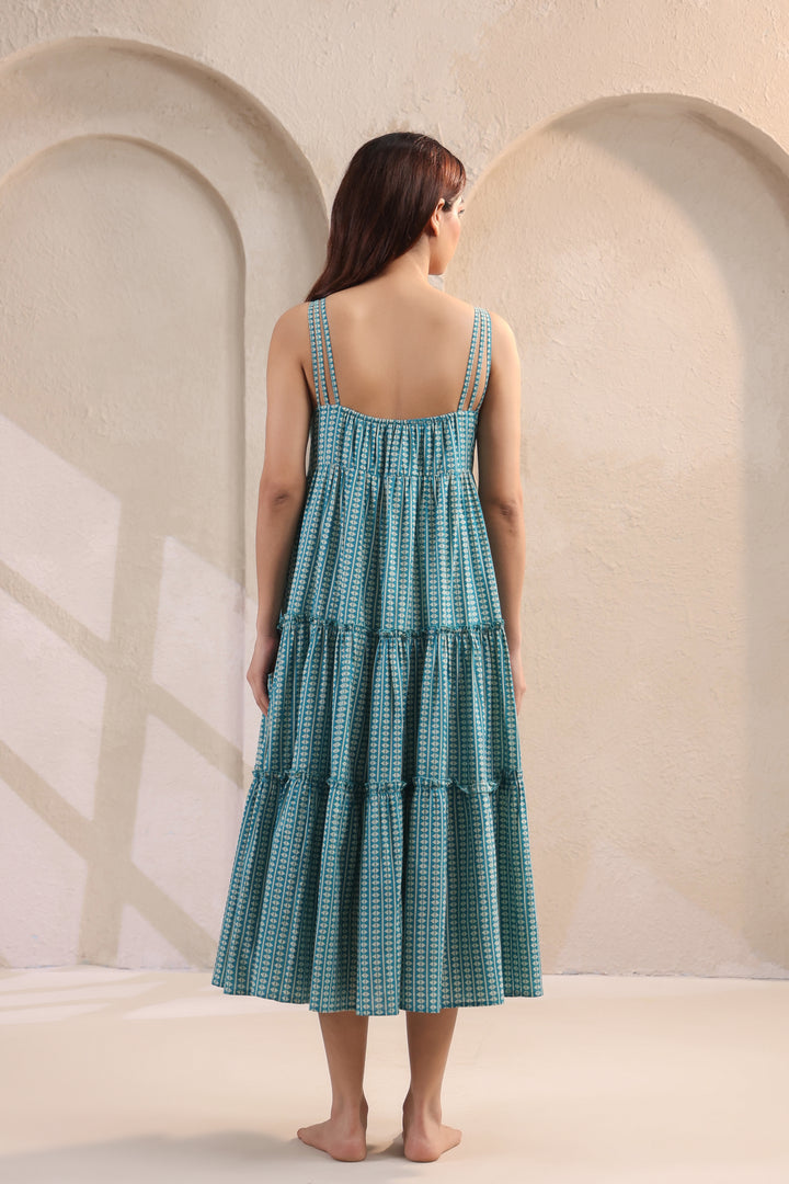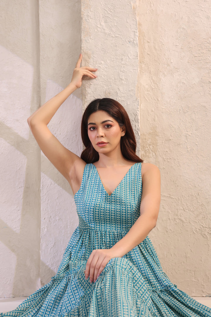 Wave Whisperer Teal Blue Cotton Dress